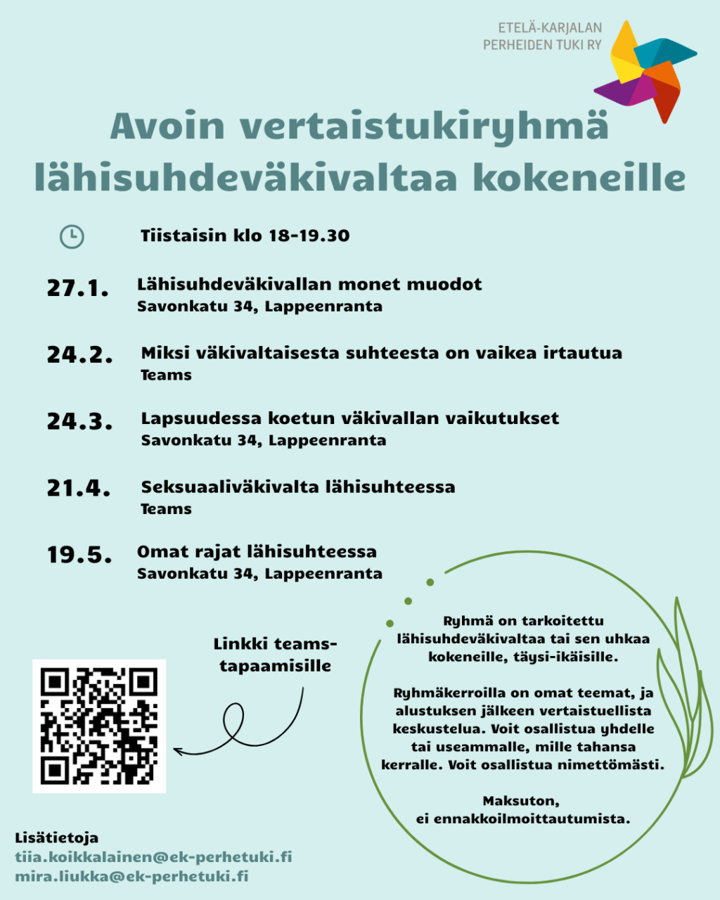 | 19.5 | Omat rajat lähisuhteessa | Savonkatu 34, Lappeenranta |