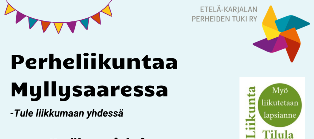 Etelä-Karjalan perheiden tuki ry järjestää yhdessä LiikuntaTilulan kanssa perheille liikuntatapahtumia kesäkuussa, Myllysaaren perhepuistossa (Myllysaarenpolku 24, Lappeenranta).