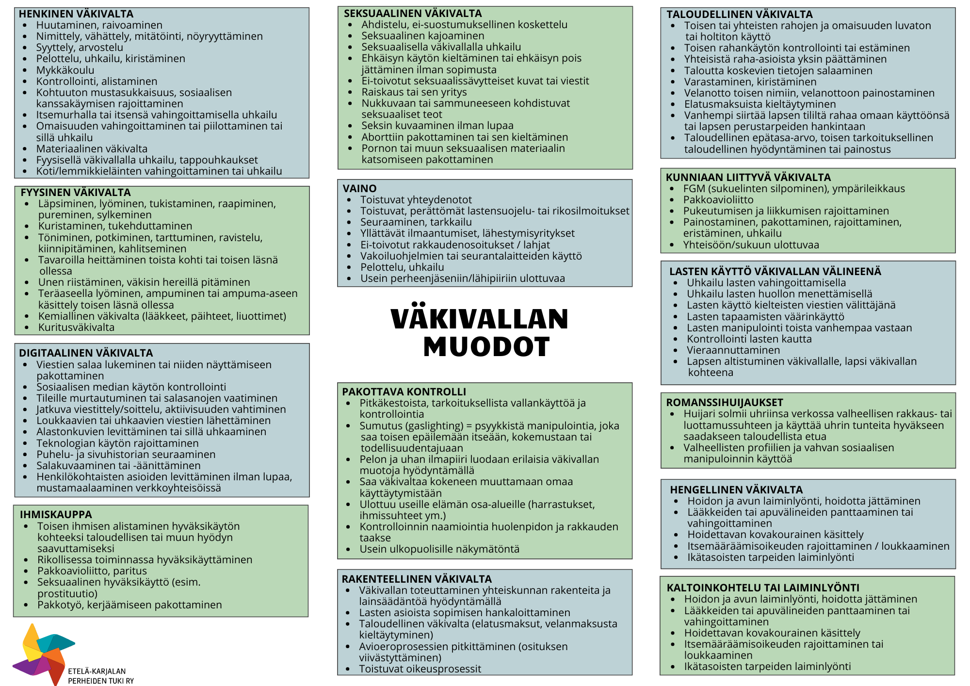 Tulostettava väkivallan muodot -kaavio