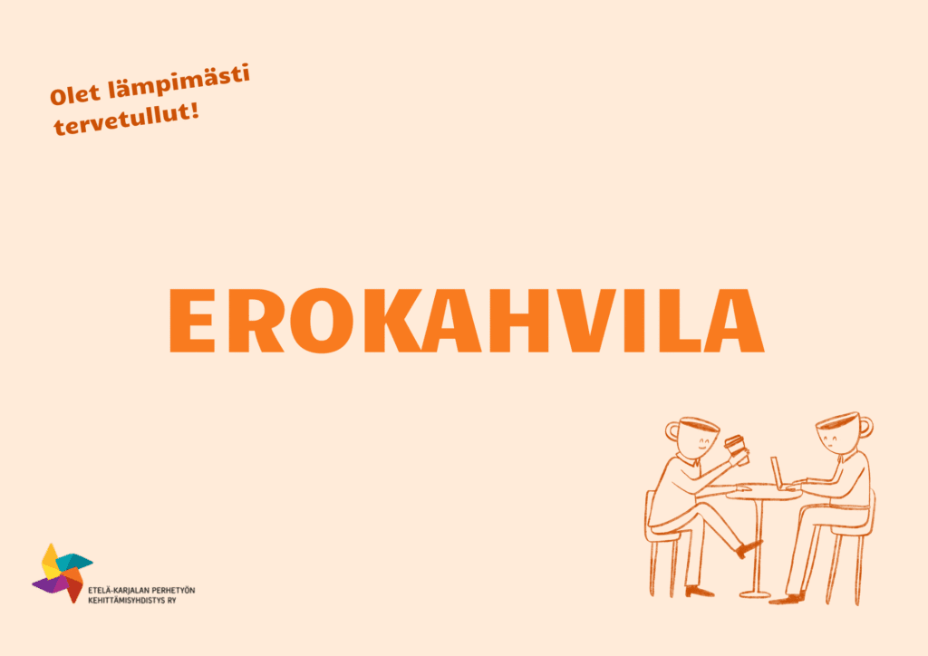Erokahvilat ovat vapaamuotoisia ja vertaistukeen perustuvia maksuttomia tapaamispaikkoja. Kahvilan järjestää Etelä-Karjalan perhetyön kehittämisyhdistys ry:n Ero lapsiperheessä -työ